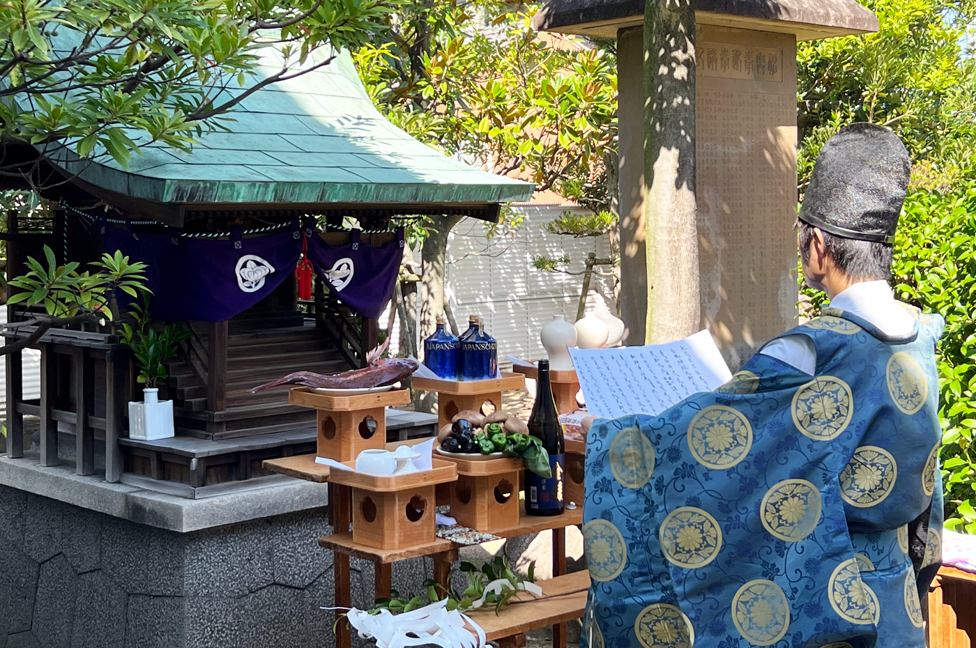 本社内の天照皇大神と八幡神を合祀した「香風神社」の祭壇に供えて